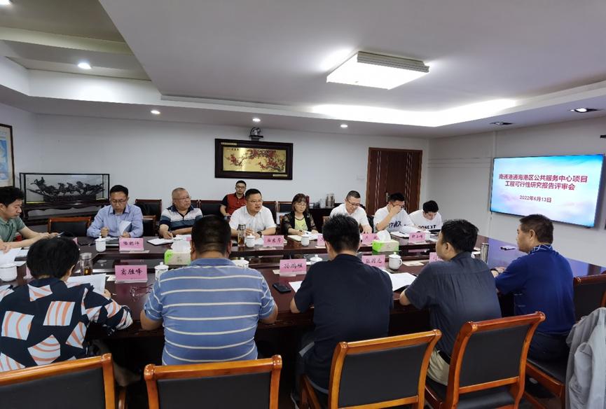 6月13日下午,南通新江海港口開發有限公司組織召開《南通港通海港區公共服務中心項目工程可行性研究報告》評審會,會議由新江海公司總經理范斌主持,集團黨委委員、副總經理、新江海公司董事長呂東芹到會指導,集團企業策劃部、工程管理部,建設單位南通新江海公司和工可報告編制單位上海新建設建筑設計有限公司的相關人員,以及五名物流、工程、工經方面的特邀專家參加會議。