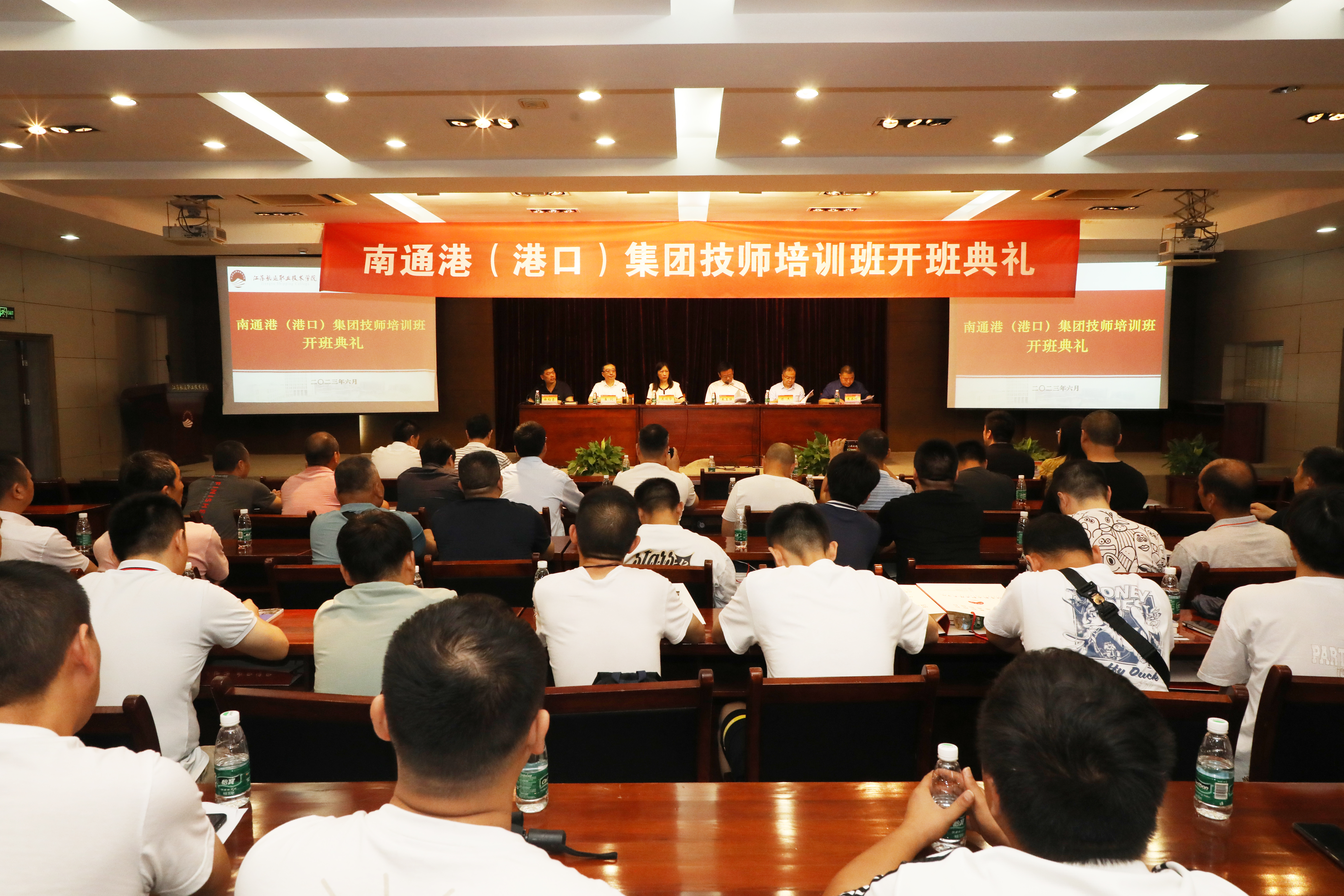 6月30日上午,集團首次職業技能等級技師培訓班在江蘇航運職業技術學院正式開班。集團黨委書記、董事長朱玉強,江蘇航院黨委副書記、校長吳麗華,集團副董事長崔劍,江蘇航院交通工程學院、繼續教育學院和集團人力資源部負責同志出席開班儀式,本次技師培訓班全體學員以及2022年港務專業職業技能等級高級工培訓班學員代表一并參加活動。