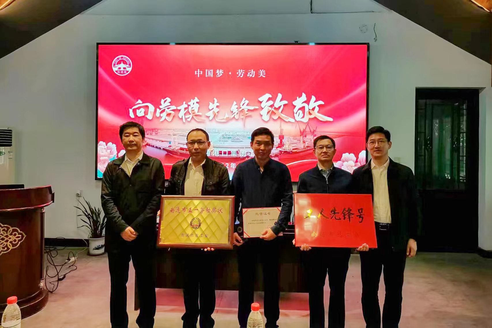 啟動(dòng)儀式上,吳亞華宣讀了南通市總工會(huì)《關(guān)于命名南通市五一勞動(dòng)獎(jiǎng)狀獎(jiǎng)?wù)潞湍贤ㄊ泄と讼蠕h號(hào)的決定》,輪駁公司生產(chǎn)業(yè)務(wù)部經(jīng)理翟小鐘榮獲南通市“五一勞動(dòng)獎(jiǎng)?wù)隆薄⒔ㄍ豆緲s獲南通市“五一勞動(dòng)獎(jiǎng)狀”、中理公司操作部榮獲南通市“工人先鋒號(hào)”。劉建向剛剛獲得市級(jí)榮譽(yù)的各類(lèi)先進(jìn)集體和個(gè)人進(jìn)行授章、授牌。